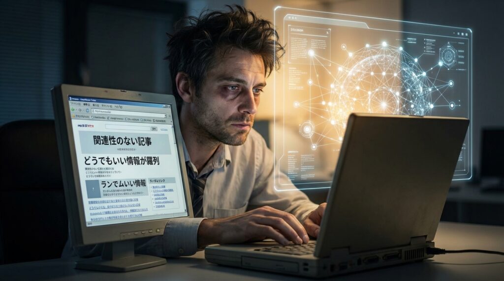 WordPressの関連記事プラグインの精度に不満はありませんか?YARPPなどが採用するキーワード一致の限界と、それがサイト回遊率に与える悪影響を解説。AIが「意味」で記事を繋ぐベクトル検索の技術的優位性を、埋め込み表現やコサイン類似度の概念から分かりやすく紐解きます。関連記事の最適化から、次世代のサイト構造『セマンティック・メッシュ・バイパスモデル』まで、AIが拓くSEOの未来像を提示します。 -