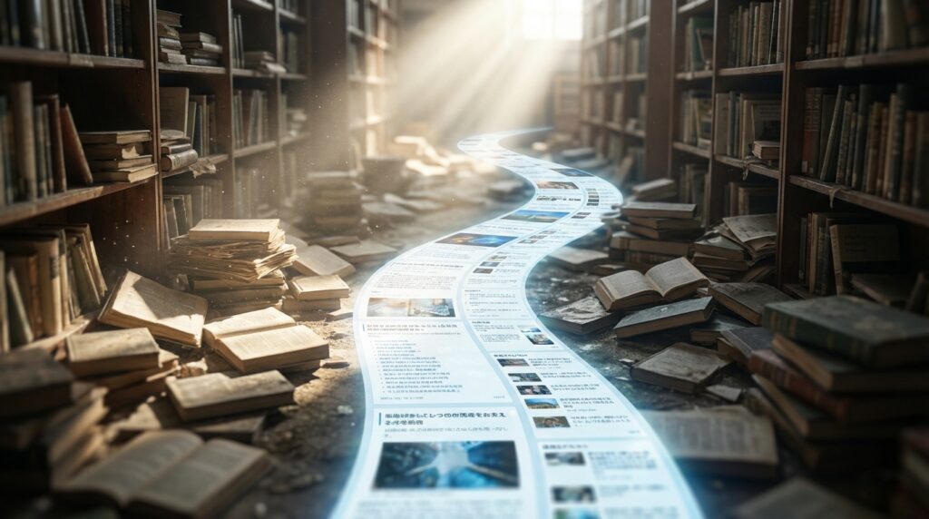 AI検索の普及で、あなたのサイトが「化石化」する未来が迫っています。AIに引用されなければ、サイトは存在しないも同然です。本記事では、AIが情報源として選ぶ「知識ネットワーク」の重要性を解説。従来のトピッククラスターモデルの限界を指摘し、解決策として次世代のサイト構造『セマンティック・メッシュ・バイパスモデル』を提案。これこそが最強のGEO(生成エンジン最適化)であると論じます。 -