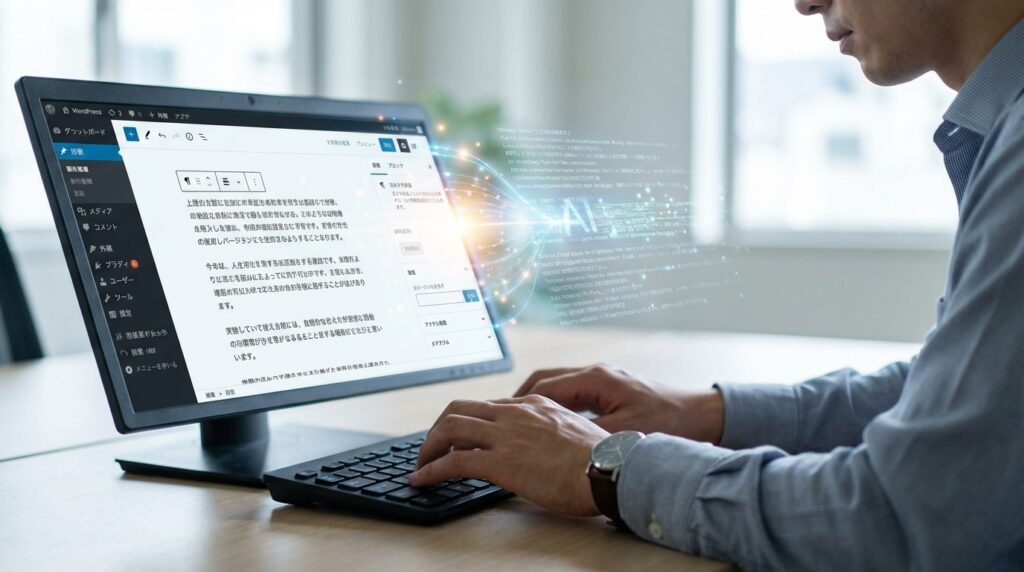 ChatGPTで記事を作成しWordPressにコピペする手間、いわゆる「コピペ地獄」に悩んでいませんか?この記事では、ブラウザ版ChatGPTとWordPress専用AIプラグインの作業フローを徹底比較。手間、管理、品質の3つの観点から、どちらが本当に効率的かを解説します。ツール間の往復作業をなくし、記事作成のストレスから解放される最適解を見つけましょう。
